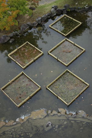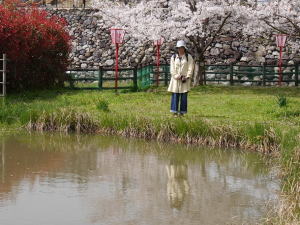 追手門での全員による記念撮影のあとはにわかしたてのモデルさんによる撮影会!。池に映るモデルさんと桜のコンビネーションは絶妙でした。モデルさんお疲れさまでした。その後は自由行動(解散)。